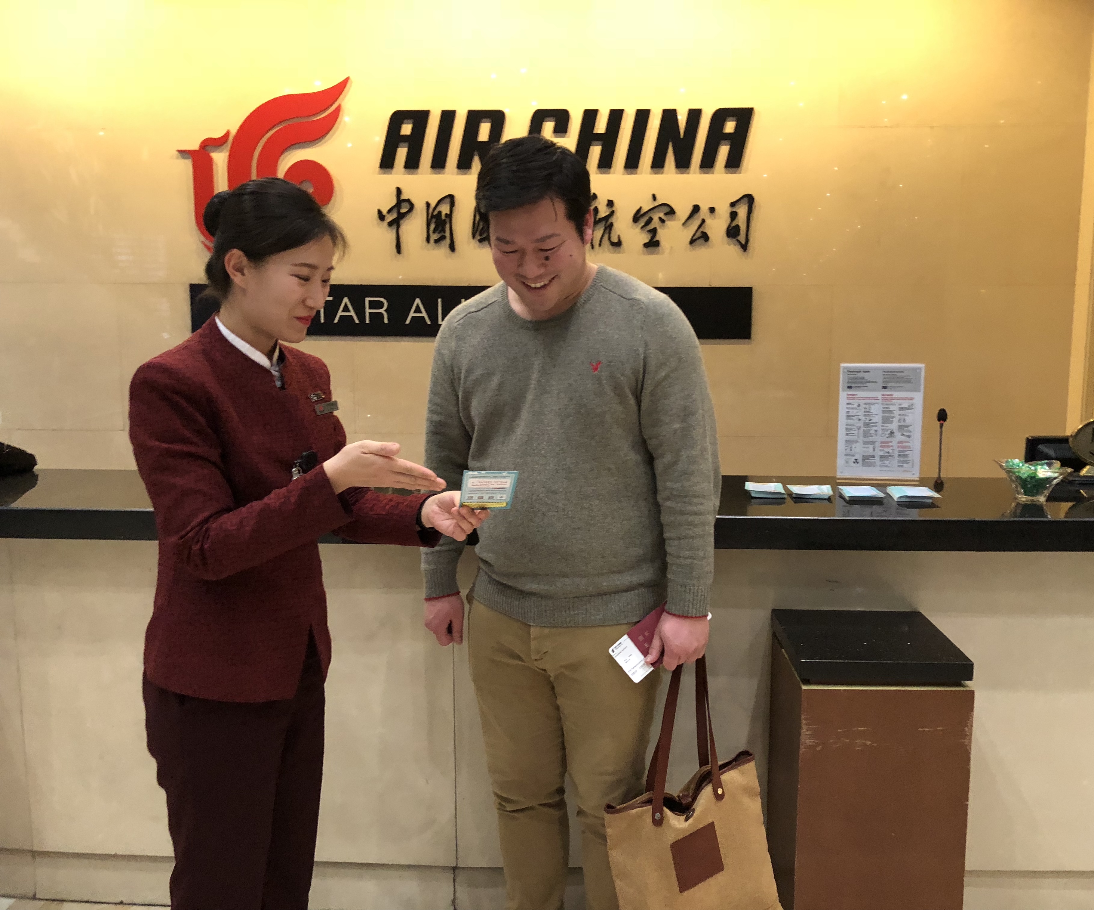 领事保护中心协调各大航空公司在首都机场值机柜台发放国别领保卡片